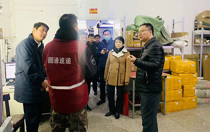 图为赵冲久在北京市密云区溪翁庄镇圆通网点调研。